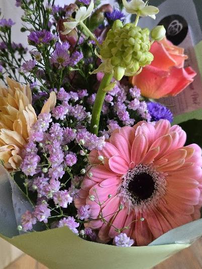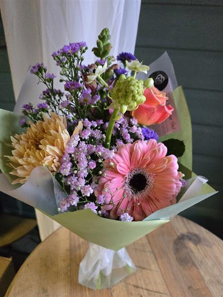 Gorgeous petite hand tied bouquet with a small gathering of more unusual floweers ready for a vase.