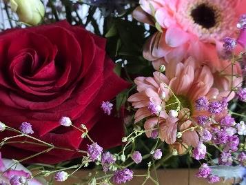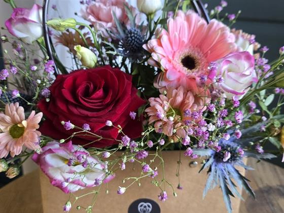 The red red rose handbag filled with pinks and the romantic red rose.